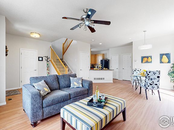 Move in Ready with Brand New Luxury Vinyl flooring and Carpet is less than a year old! You'll notice the open feeling right from the entry courtesy of the 9' ceilings and abundance of natural light on the main level. The spacious kitchen features plenty of countertop space, all black appliances, and ample cabinet space. The primary bedroom is complete with plush carpeting, a walk-in closet, and an en-suite bathroom that features a soaking tub and shower. Enjoy the low maintenance yard and spend your time on the covered patio or at one of the neighborhood's beautiful parks. All of this just minutes from Downtown Fort Collins and I-25.