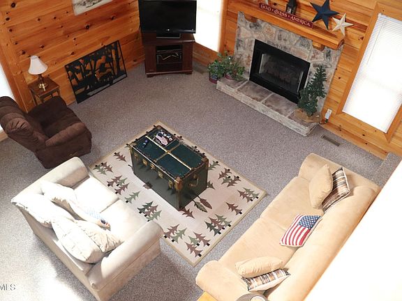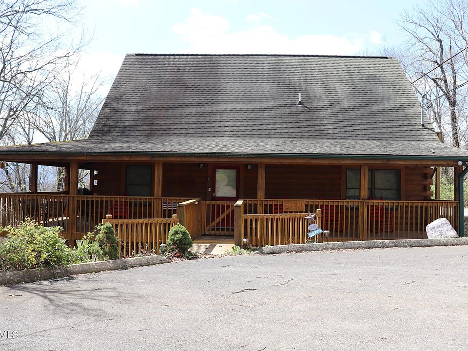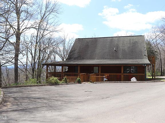 Beautiful, authentic log cabin with a nice view of Mt. LeConte and Bluff Mtn. This cabin, in popular Eagle Springs Resort features level entry from the large parking area and is rental ready for extra income $$. Just four miles behind Sevierville Convention Center and the new waterpark. The family room with fireplace, kitchen, and dining are all on the main floor, along with 2 BRs, 2 baths, and laundry. The large open loft allows for add'l sleeping with twin sleeper sofas, entertainment and it own balcony. The large wrap-around porch features 4 red rockers where you can enjoy your morning coffee! Gas grill and table beckons outdoor dining. And that hot tub will help soak your troubles away!! Get-Away today!!