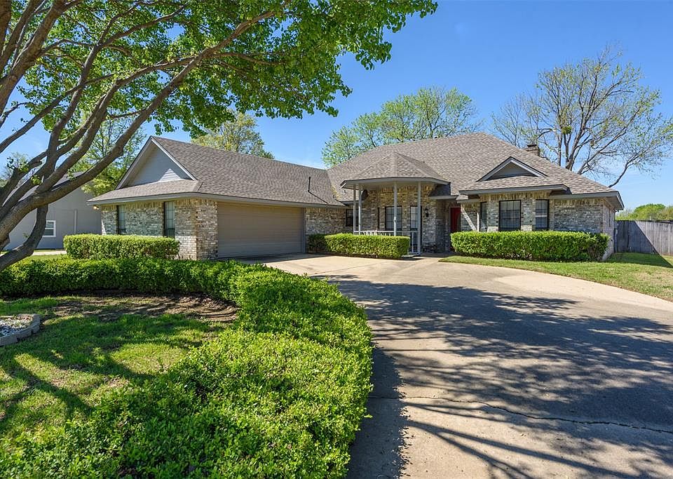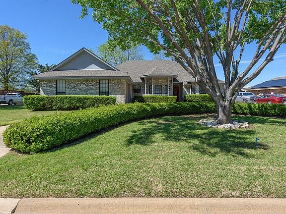 Don't miss this well-maintained one-story home in highly sought after the Southridge subdivision nestled under the shade of a beautiful mature tree across the street from a quiet cul-de-sac. A beautiful floor-to-ceiling fireplace highlights the open floor plan that greets guests. Stainless steel appliances, white cabinets and granite countertops with ceramic tiling is perfect for your gourmet chef. Spacious master with area for seating features a dual sink vanity and separate walk-in shower and garden tub.