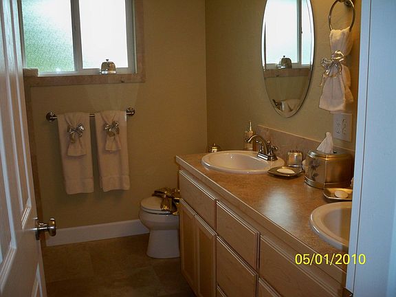 Gorgeous custom remodel with high-end upgrades. Move-in ready. Low taxes. Bright, open floorplan. 2010 upgrades include: roof, vinyl windows, custom Lanz cabinetry, appliances,H2O heater, gutters, paint & more. Hardwood floors with woodburning fireplace in living room. Travertine stone & double sinks in elegant bathroom. Huge backyard with mature fruit trees, flowers & patio.