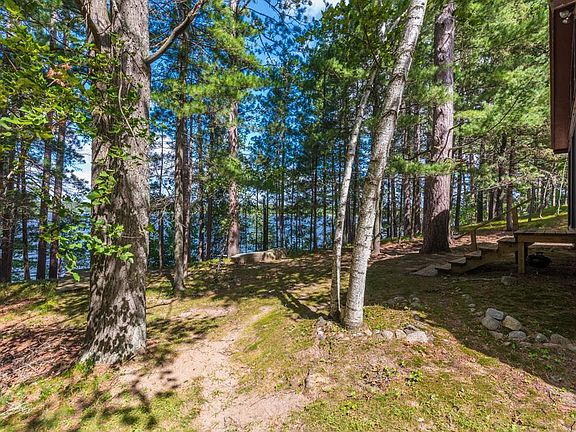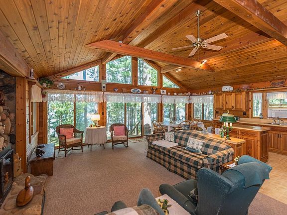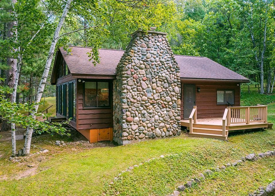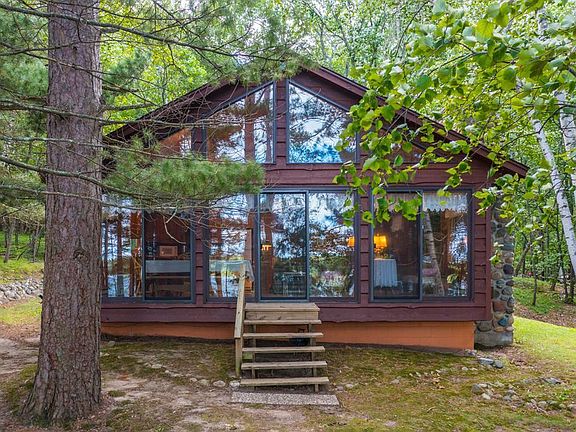Enchanting Storybook Setting! Discover this hidden treasure tucked away in the woods of Lake Hattie…offering 249’ of pristine shoreline, incredible privacy with nearly 2 acres of gorgeous-majestic spruce, pine and oak trees. This charming 3-bedroom-2 bath lake home features two main-level bedrooms plus a cozy open sleeping loft with a private bath, a wall of lakeside windows, a beautiful classic wood-burning stone fireplace, tongue and groove knotty pine cathedral beamed ceilings, an open floor plan and offers a true Up North cabin feel. The park-like grounds are amazing and the picturesque views are stunning…there is an intentionally cleared area with a private firepit that is perfect for family and friends with campers…enjoy the same fabulous lake views the cabin owners get to experience. There is a shed near the shoreline and one near the cabin, a circular drive, a drilled well, a compliant septic system and a certificate of survey. This is truly a one-of-a-kind private retreat that is being sold fully furnished…just pack your bags and head to the lake!
