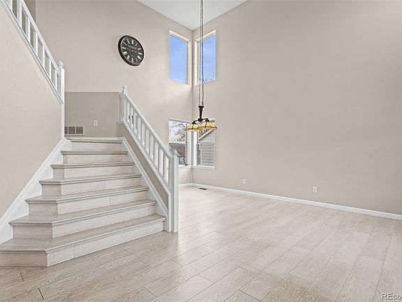 This beautifully designed five-bedroom, four-bathroom home is ideally situated near shopping centers, restaurants, parks, recreational facilities, schools, and within walking distance to RTD bus stops. A true must-see property! The main level features a spacious open-plan living room and dining room, flowing seamlessly into a modern kitchen. The kitchen is complemented by a cozy breakfast room that opens directly into the family room, which is enhanced by a charming gas fireplace. Natural light pours into the space through the high-ceilinged entryway, creating a warm, welcoming atmosphere.