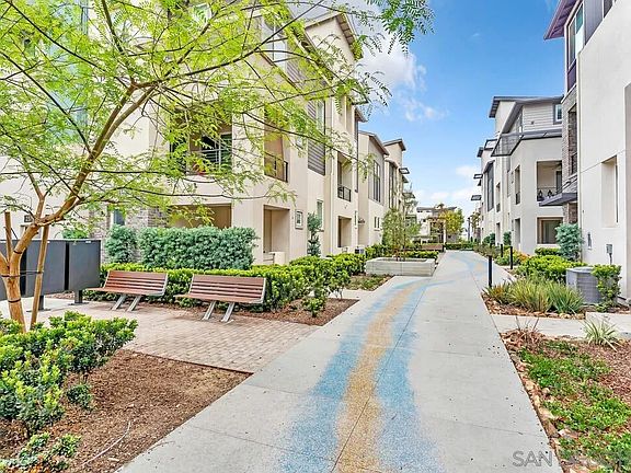 Welcome to the highly sought-after Millenia community in Chula Vista! This stunning tri-level townhome offers a spacious and modern living space, featuring 3 bedrooms, 2.5 bathrooms, and a total area of 1,430 square feet. Step inside and be greeted by a large and inviting modern kitchen, complete with an oversized island that's perfect for meal preparation and entertaining guests. The kitchen boasts plenty of storage space and is a true centerpiece of the home. Throughout the townhome, you'll find new luxury vinyl flooring, adding a touch of elegance to each room. Natural light cascades through the windows, creating a bright and airy atmosphere throughout the home. Step outside onto the private balcony, where you can relax, entertain, and bask in the beautiful San Diego weather. The second level is home to the kitchen, living room, balcony, and a convenient half bathroom. This level offers a seamless flow between the main living areas, perfect for daily living and entertaining. Upstairs on the third level, you'll find all three bedrooms and two full bathrooms. The master bedroom is a true oasis, featuring a walk-in closet and a beautifully updated master bath. The Millenia community itself offers an array of amenities for its residents to enjoy. Take a dip in the beautiful heated pool on warm summer days or spend quality time with your loved ones at the playground and dog parks within the community. The location is also a major highlight, with proximity to the Otay Ranch Town Center, parks, restaurants, shops, and top-rated schools.
