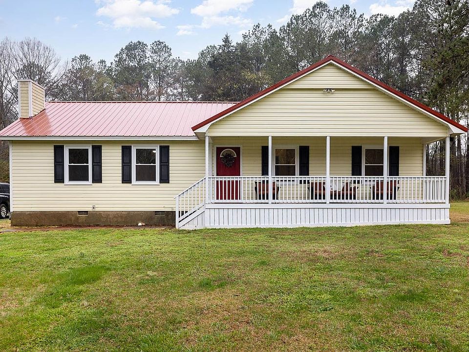 Great 3 bedroom/2 bath home on 2.6 acres with no restrictions!!! Low maintenance with vinyl siding and metal roof. Covered front and back porches, formal dining room. Lots of space for outside activities! Great location between Pittsboro and Sanford.