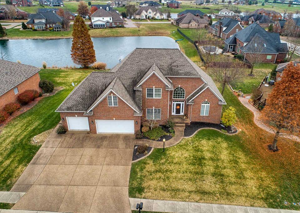 Welcome to this immaculate, all brick, two story home with a basement situated in the very desirable Lakeridge Crossing subdivision in Newburgh! Upon arrival, you will notice the beautiful landscaping, extended driveway and lake! When entering, you will fall in love with the large entryway, open floor plan and all the updates! To the left of the foyer is the formal dining room with wainscoting, tray ceiling and tiled flooring. The living room features large windows to allow for tons of natural light, a gas fireplace with glass surround and white casing, built in book-case with storage, carpet, recessed lighting and is open to the kitchen. The kitchen offers an abundance of cabinets, granite counter-tops with stone back-splash, breakfast bar, built in desk, pantry, tiled flooring, new stainless steel appliances and an eat-in dining area. There is a main level master suite that has crown molding, carpet, ceiling fan and a recently updated master bath! You won't want to miss the master bathroom that has gorgeous tiled flooring, granite counter-tops, glass walk-in shower with tile surround, a separate soaking tub and walk-in closet. Upstairs, you will find three large bedrooms and an updated bathroom. Downstairs is a full finished walk-out basement with a large family room, wet-bar, and tons of windows. There is also a suite with another bedroom, bedroom, office and utility/exercise room. Step out back onto the large deck to enjoy a peaceful evening gazing at the water. Recent updates include bathroom updates in 2016, granite counter-tops and stainless steel appliances in 2016, new Treks deck and patio doors in 2016, main floor furnace in 2015, second floor furnace in 2016, water heater in 2018. The sellers are also offering a $5,000 carpet allowance.