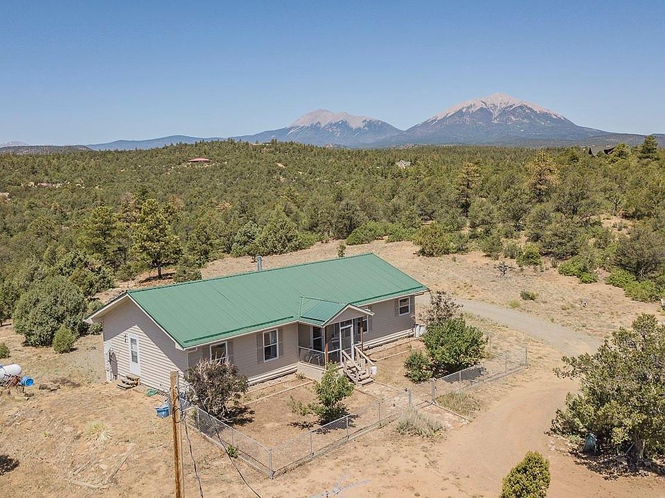 Nice Modular Home with Meadows and Mountains located just outside of Gulnare, less than 1/4 mile from the Pavement on Co. Rd. 46. This Beautiful Home has a nice floor plan with an open concept Living, Dining, Kitchen area opening onto a back deck offering amazing views of the Spanish Peaks and the beautiful meadow down below. The Master Suite is on one side with 2 additional bedrooms and bathroom on the opposite side of the home. There is a full basement with a 2 car garage on one side and ample storage on the other side. The home is tape and textured with bull nose corners and has recessed lighting. It comes partially furnished and is in like new condition. There is also a cute Bunkhouse/Shed. Big Views, Good Well, Cistern and excellent terrain in the Wildlife Rich Apishapa Valley.