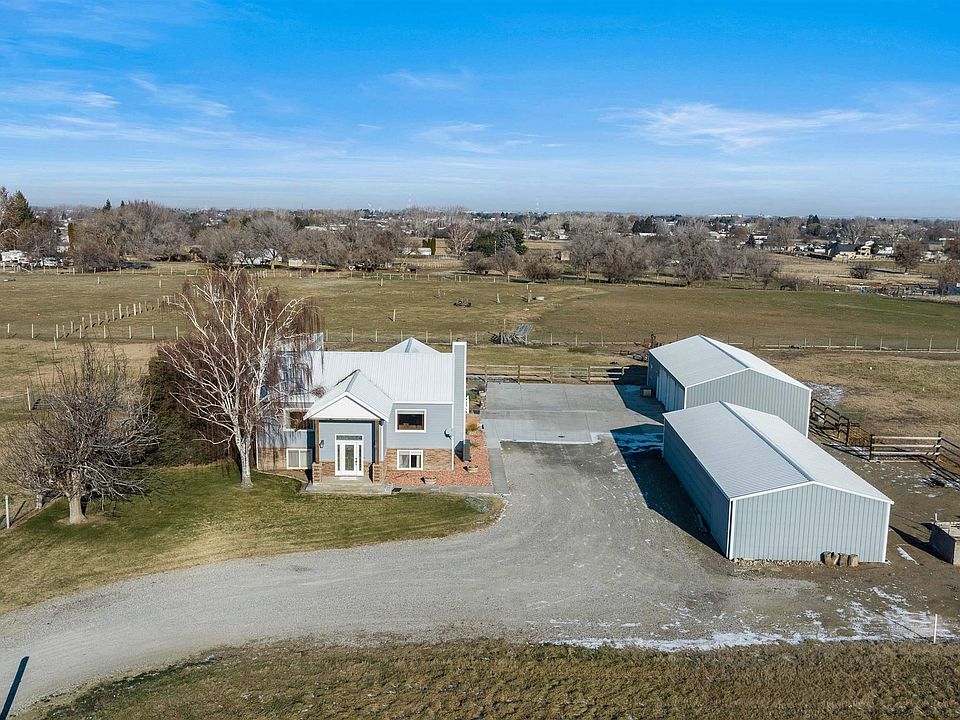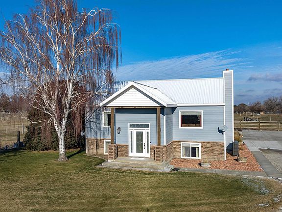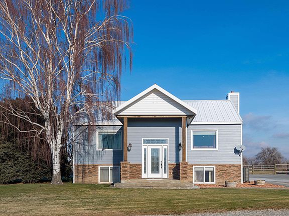 MLS# 273525 Set on a total of 5.23 acres with a long private gravel access, this beautiful home is now available for another lifetime of memories. It's over 3000 sqft and comes with a 30'x60' insulated shop with a partitioned workshop, a 24'x60' hay barn, and a 2-stall barn. This property is entirely fenced and divided into 2 lots. The home, shop, and barns sit on the first 2 acres. The 2nd lot is 3.23 acres of prime vacant land, a perfect buildable lot with its own easement access. It currently has sprinklers running throughout and is completely fenced. Access to the home is versatile, with three distinct entrances: a top-level entry leading to the deck, a bottom-level access from the driveway, and a stunning split entry at the front. Designed with entertainment in mind, the home features a spacious great room, seamlessly connecting to a covered deck, providing a tranquil setting for gatherings. The arrangement of the lower level, with its independent access, makes it perfect for ensuring privacy or accommodating multi-generational living arrangements. Attention to detail and care is evident throughout the home, which has been meticulously maintained and periodically renovated, with the bathrooms being the most recent upgrade. The dedication and love the owners have poured into this property are palpable, making it a truly special and inviting place to call home. Seller will give Buyer a $2000 flooring allowance at closing for the downstairs bedroom.