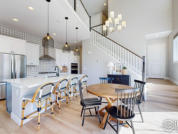 Welcome to this beautiful home on a corner lot facing a greenbelt. Located in the fabulous Painted Prairie neighborhood rated "Community Of The Year" in 2022 with a community garden, parks, and many neighborhood events. Upon entering you are greeted by soaring ceilings, and an open-concept main-level living, plus, dining space. The chef in your home will love cooking in this gorgeous kitchen with quartz countertops, stainless steel appliances, a contrasted island, a walk-in pantry, and floor-to-ceiling deco tile backsplash. Cozy up in the family room by the gas fireplace with charming deco tile and wood mantel. Upstairs you'll find the master retreat, a true oasis with laminate vinyl plank flooring, a balcony with mountain views, an ensuite 4-piece bathroom with separate vanities, and a walk-in closet with built-ins. The upper level is completed by two additional bedrooms, another full bathroom, and a laundry closet. Enjoy summer BBQs in the sideyard or fenced front yard. Parking is easy with the attached finished 2-car garage with epoxy floors. Easy access to Denver and DIA. Hurry, this charming property could be yours!