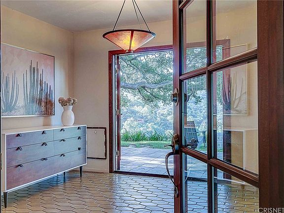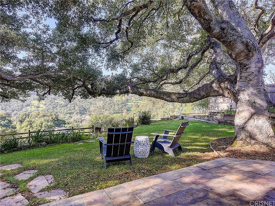 Stock market got you down? Park Your Cash in California Real Estate Instead! HUGE PRICE REDUCTION!! Located in Topanga's coveted Post Office Tract lies a gated 3 bed, 3 bath home just steps from Topanga State park. Nature abounds with a rare flat yard showcasing majestic oaks that frame expansive cross canyon views & surrounding hills. Designed to entertain, this house offers a seamless connection with the outdoors as you step through the French doors onto the wrap around flagstone patio with built-in patio heaters, welcoming your guests to take in the views. The Master bedroom sanctuary has a private balcony to enjoy morning coffee while the 2nd upstairs bedroom has a "secret" loft space to explore. Cathedral ceilings in LR and FR with cozy fireplaces offer places to unwind & skylights let in abundant light. Updates include bathrooms and a cook's dream kitchen with stainless appliances (5 burner stove), movable cutting block island plus eat-at breakfast counter. You will feel like you're miles away from the hustle & bustle of life yet with the convenience of being just minutes from the beaches, library, school, shops and restaurants. Come see why so many want to live in Topanga in all her breath taking beauty.