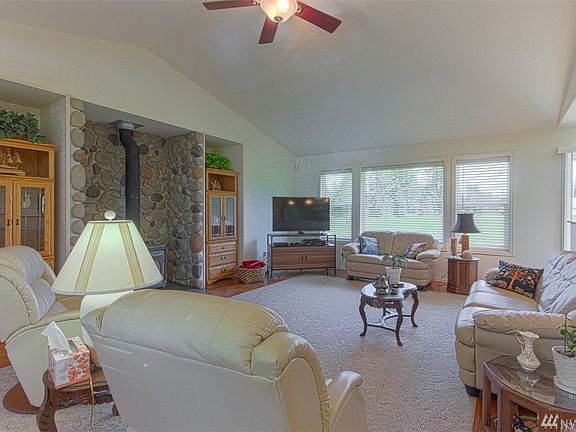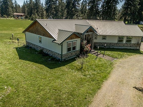 Elegance with a mountain view! Open concept great room w/loads of natural light adorned by a soapstone wood burning fireplace & quality hardwood framed by carpeting. Spacious kitchen w/eating bar, granite counters & custom cabinets w/wine rack lies just beside a dining area & a lovely sun room. The impressive master bath is sure to please w/5 piece bath. Metal roof, 2 H2O tanks, radiant heat (in garage too), 3 car detached garage, generator ready and more. Custom features abound! Welcome home!