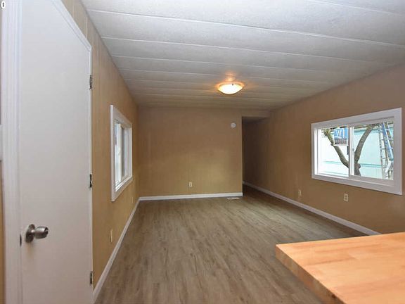 Don't judge this book by its cover!! This manufactured home has been completely renovated. New waterproof vinyl floor, Vinyl double pane windows, butcher block countertops, paint, lighting fixtures, electrical outlets, tiled walk in shower, and so much more! New space rent to be $750 a month, garbage included.