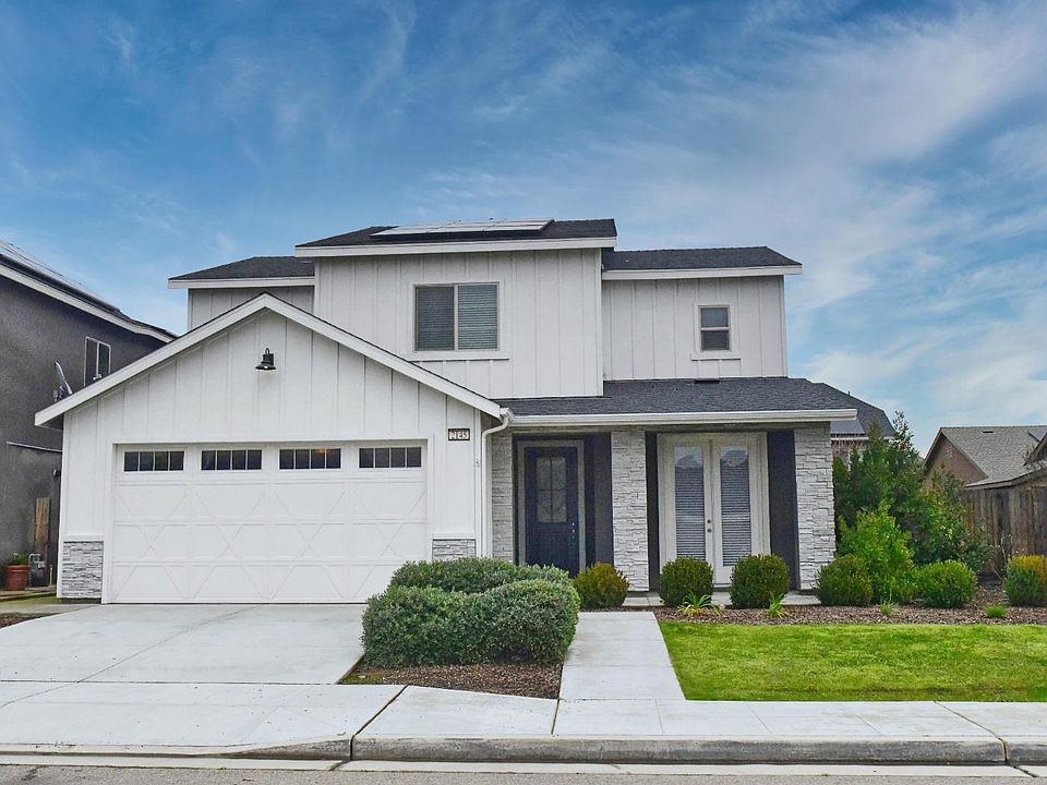 Welcome to this stunning newer home, nestled in the picturesque Clovis area. Boasting numerous upgrades and modern features, this residence offers a luxurious living experience.Step into the spacious kitchen, adorned with exquisite granite countertops, pendant lights, a custom backsplash, and stainless steel appliances. Recessed lighting illuminates the area, complementing the ample corner pantry for all your storage needs. Enhanced with extended tile flooring in high-traffic zones, this home combines style with practicality seamlessly.The great room is accentuated by additional lighting and tasteful window treatments throughout the house. Both the secondary bathroom and laundry room feature elegant granite countertops, adding a touch of sophistication.The garage, with its extra depth, presents the possibility of accommodating a third vehicle. Downstairs, a versatile den awaits, perfect for a second living space, an additional bedroom, or a home office.Embrace energy efficiency with the inclusion of a tankless water heater, as well as 20 year paid solar lease. Outside, the meticulously manicured yard sets the stage for outdoor gatherings and summer barbecues in the backyard.Nestled within the acclaimed Clovis Unified School District, this home offers not only exceptional living but also access to excellent educational opportunities. Enjoy added privacy with no direct neighbors across, while nearby walking trails invite exploration and relaxation.