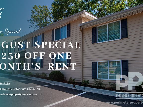 Welcome to The Enclave at Riverside! This charming and spacious 2-bedroom, 1-bathroom apartment is located in a private, gated community in Atlanta's growing Upper Westside. This unit offers a blend of comfort, convenience, and styleperfect for anyone looking to enjoy a quiet, pet-friendly space while staying close to the city. Do not miss out on our MOVE IN SPECIAL! $250 OFF one month's rent! "Copy this link to your browser to schedule a showing at your convenience: Step into a bright and open living area featuring beautiful wood-style floors and modern ceiling fans. The kitchen comes fully equipped with stainless steel appliances, ample cabinetry, and an adjoining dining space. Each bedroom offers generous closet space and plush carpet for added comfort. Enjoy the ease of in-unit laundry with a washer and dryer included, and take advantage of the community's on-site parking. Whether relaxing on your private deck or exploring nearby attractions, this apartment is designed to fit your lifestyle. ASK FOR OUR OTHER AVAILABLE UNITS. Location Highlights: Gated community with easy access to I-285 and I-20 10 minutes from West Midtown and Westside Reservoir Park Close to local dining, shopping, and grocery stores Convenient to Downtown Atlanta and surrounding neighborhoods Utilities, Fees and Facts: Non Refundable Pet initial fee $250 Pet Monthly Fee: $25 Smoking | Not allowed inside any of our apartments Parking | Gated Parking lot Utility Info | All electric Utility Costs | Water $75 Non Refundable fees: Application Fee $75 Move in Fee $100 This home offers the flexibility and features today's renters are looking for. Schedule your tour today and see all that 2145 Bolton Rd NW has to offer! *Unit layout and finishes may slightly differ from listing photos.