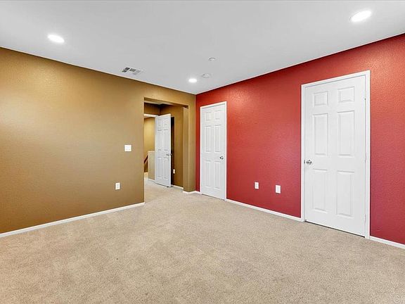 Welcome to this move-in-ready townhome offering unmatched privacy and spectacular mountain and sunset views! Nestled in one of the most secluded spots in the complex, this residence provides serene views from the living room and balcony, perfect for morning coffee, outdoor dining, or unwinding with a glass of wine in the fresh air. The attached, oversized two-car tandem garage offers direct entry into the home and includes a first-floor laundry room. As you go upstairs, an open layout with high ceilings creates a bright, airy feel, seamlessly connecting the spaces. The kitchen boasts generous countertop space, barstool seating, stainless steel appliances, and a walk-in pantry. Its open design flows into the living room, making it ideal for hosting gatherings or cozy evenings with family and friends. A half-bathroom and a versatile bedroom on this level offer flexibility for guests or a home office. On the top floor, you’ll find two additional bedrooms, each featuring its own en-suite bathroom. The primary suite, showcases views and an expansive walk-in closet. Enjoy A/C throughout the home, plus dimmable recessed lighting in the living room and two bedrooms for a customizable ambiance. Community amenities include multiple parks with playgrounds, a fitness center, a clubhouse, picnic areas, and a pool area with a main pool, kids’ pool, and spa. Conveniently located near major shops, dining options, movie theaters, Otay Ranch Mall, award-winning schools, and easy freeway access—this home blends comfort and lifestyle in one perfect package!