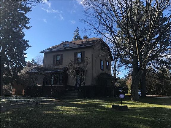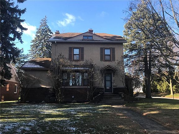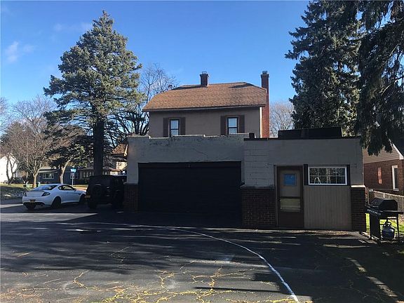 Enjoy this spacious stucco house with great opportunities. 3/4 bedrooms 1.5 baths. The third floor adds 200 sf for the 4th bedroom making it almost 2200 sf in total. Maple kitchen cabinets, appliances and furnace are 8 yrs. old. Hardwood floors and natural wood throughout the house. Thermal windows, skylight, new central A/C, interior paint, ceiling fans, bath vanity are newer touches. The first floor has a large living room with fireplace, bow and picture windows, a formal dining room, a family room and office or game room. The back of the house was converted from a dentists office to a 2.5 car garage, workshop area, a hot tub room and a large parking area with a basketball court. Close to the Irondequoit border, it's convenient to expressway and shopping. First showings begin on Saturday 12-12-20 at 10 am. One group at a time. Don't forget your mask.
