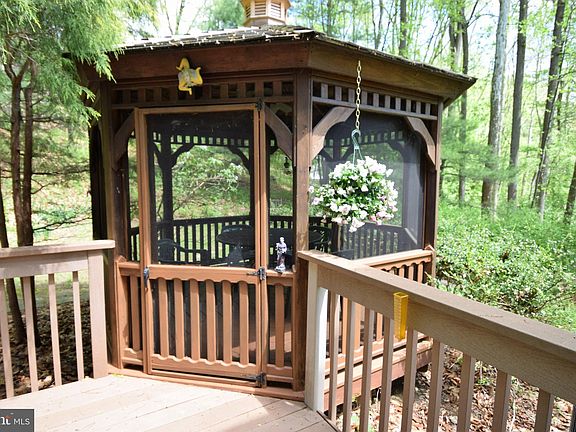 4 Bedrm, 2.5 Bath Colonial on private, wooded acre. Hillside retreat overlooks the Darby Valley Creek Park. Relax in your gazebo to enjoy the changing seasons & scenes of nature. Entertain family & friends on the back deck built w/ Trex decking. Step inside sliders to a cozy Family Rm w/ gas fireplace, opens up to a beautifully remodeled Kitchen with granite countertops & updated appliances. Half bath & Laundry Rm are located on the hallway to side yard that has shed and swing. Steps to the lower level includes a finished basement, plus a utility room & an oversized 1-Car garage. Main level also includes Dining Rm & Living Rm. Entry Foyer with stairs to second floor w/ 2 front Bedrms used as office space, guest Bedrm, & Hall Bath. Main BedRm has Full Bath, & walk-in Closet. Pull-down stairs to attic space provides additional storage. This large Acre + lot can be your vacation paradise but w/ easy access to highways and community parks. Well maintained and updated, includes mounted speakers & so much more.