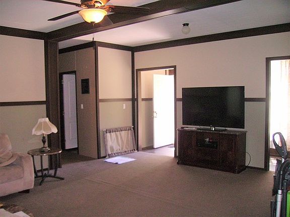 Extremely nice manufactured home, 3 bedrooms 2 baths, all bedrooms have walk-in closet, home has foyer, 2x6 ext walls, 9-foot ceilings nice kitchen with large eating bar, large living area with beamed ceiling. Low maintenance , wonderful screened in porch plus open deck area, three acres with beautiful shade trees.