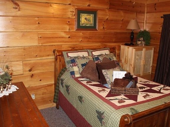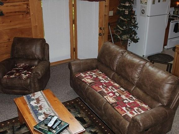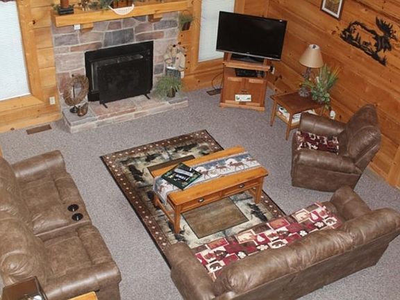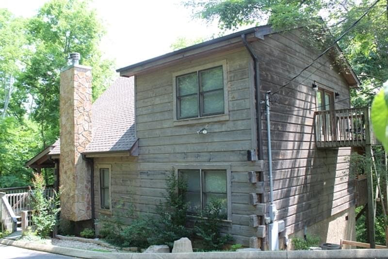 Authentic log cabin, most secluded in resort plus a nice view!. RENTAL READY or 2nd vacation home!Features 3 bedrooms, 3 baths (2 BR; 2 baths on MAIN); open concept kitchen, dining, and family room with fireplace. Loft with game room has additional sleeping area, plus 3rd BR and bath. Laundry, owner's closet; wrap-around porch; hot tub; 2nd floor balcony; and crawl space storage complete the package.Conveys with all built-in kitchen appliances; lg cap HE washer/dryer; most of the furniture; pool table; and some decor.Resort has city water/sewer and county roads! (rare)Resort amenities include swimming pool, bathhouse, picnic pavilion, mowing of common areas; mgmt; onsight dumpsters, and more. Very reasonable annual HOA fee.