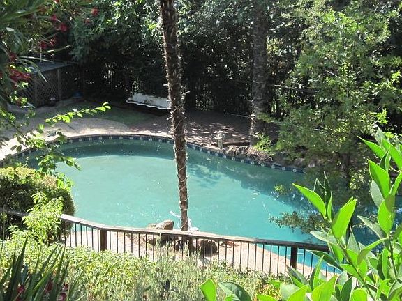 Enter the property through the majestic century plants on long paved road to this lovely home. The NID Canal is like a beautiful year round stream with small waterfalls to soothe your soul.Sit on the large front deck and listen to the water and birds singing. Sit on the back decks to view the gorgeous DAL PINO POOL and forest beyond.A delightful covered cabana at poolside awaits your table and chairs. The MASSIVE BEAMS in the vaulted ceiling in GREAT ROOM and kitchen are impressive! Master suite and office on main floor with 3 bedrooms and full bath downstairs. Home needs remodeling and lots of TLC but will be well worth the effort to make it fabulous again!