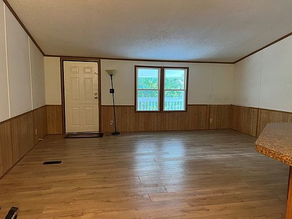 Nice doublewide on permanent foundation. From the paved driveway walk along a stone path to steps leading up to the front porch that runs the length of the DW. Clean and ready to move in.On the property also is a singlewide that is being updated for occupancy. New electric tankless water heater.