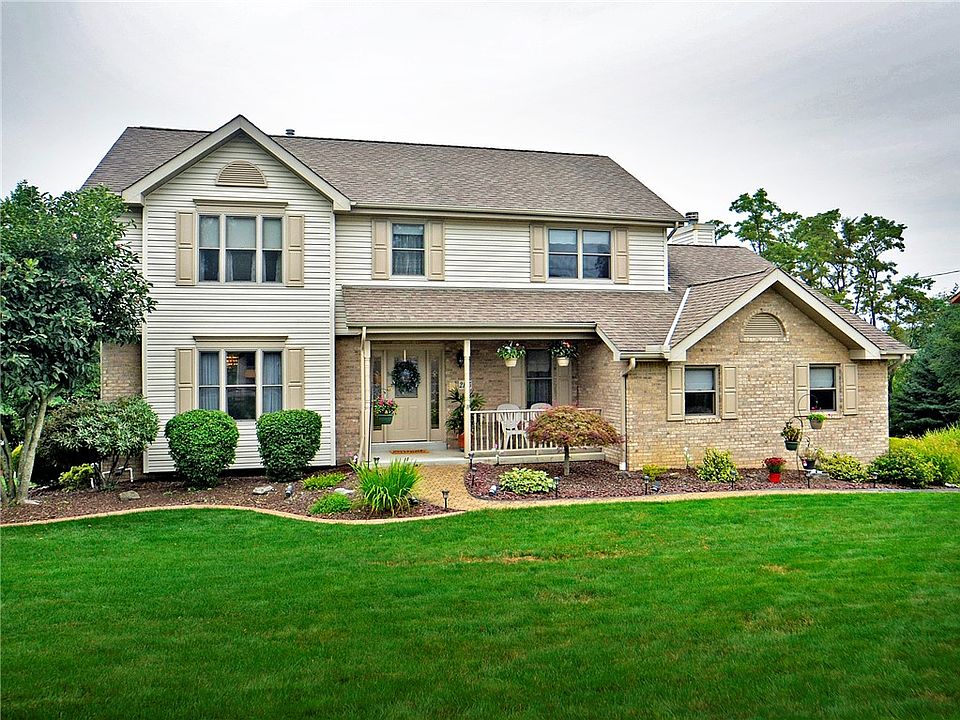 Outstanding home with 2 master bedroom suites. One on first floor and one on the second floor, both have walk in closets. Built in 2003, with EIK, Formal dining room, 3 1/2 baths, trex deck off the kitchen. Oversized 2 car garage in back of home with concrete driveway. First floor family room with gas stone fireplace. Home was built with handicap access with wider steps and doorways. Lovely kitchen with island, and all appliance included, plus first floor laundry with washer & dryer included. Covered front porch. Home is beautifully landscaped. Crown molding thru out the first floor. 3 skylights. Full Basement can be finished and is plumbed for another bathroom. Shed in back and storage under deck. Additional off street parking in front. Lots of storage areas. Plus home has a lawn sprinkling system. HSA home warranty included.