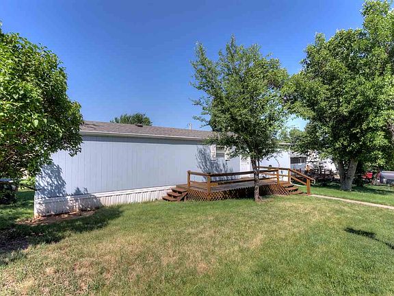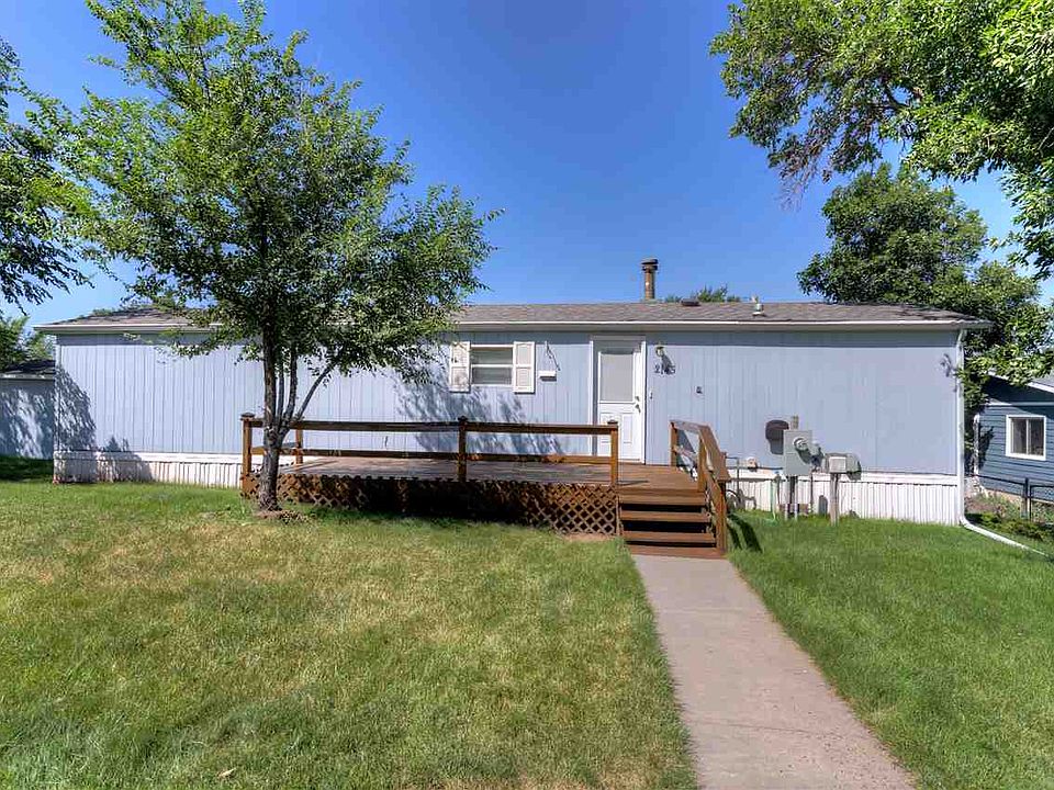 Affordable main level living! Mobile home is well kept and recently freshened up, 2 bedrooms with nice sized closets, 1 bath. Open concept in the main living area. Yard is fenced and has large trees and lilac bushes with decks front and back for your enjoyment. Yard shed for extra storage.
