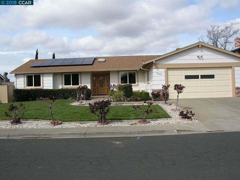 Price reduction! Beautifully maintained and spacious one story, four bedrooms, 2.5 baths. Cul-de-sac location. Formal dining room, big family room with cathedral ceiling and extra builtin wood shelving and fireplace. Light and bright roomy breakfast area off kitchen. Gas cook top, microwave, hot water dispenser, loads of cabinet space and pantry too. Hall bath has jetted tub. Inside laundry room next to 1/2 bath. Enjoy deck and spa, lovely professionally maintained lawn and rose garden and patio. Remote controlled shade awning. Close to shopping, Trader Joe's, Whole Foods and minutes to BART.