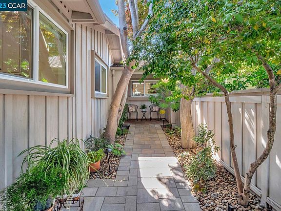 A beautifully landscaped pathway guides you to the front entrance of this enchanting home.You will love the light bright and spacious feeling of this open concept home. Every inch of this single story home has been updated, including a versatile "bonus" room/home office with built-in custom cabinetry as well as three large bedrooms. Gorgeous LVP flooring has been recently installed—fresh paint throughout the home with vaulted ceilings and recessed lighting in the living room. The kitchen features granite countertops, a gas cooktop, breakfast bar and stainless-steel appliances. The spacious primary suite also has vaulted ceilings, ample customized closet space, and a second slider to the patio. Enjoy gorgeous views from your private patio as you sip your favorite beverage. There's a community pool right down the street, or join the club for more options, including tennis, golf, pickleball, exercise classes, and the fantastic clubhouse restaurant! This gated community with 24-hour security is conveniently located between Downtown Danville, San Ramon City Center, Blackhawk Plaza, and I680. This is your opportunity to experience refined California living within the vibrant, friendly community of Crow Canyon Country Club!