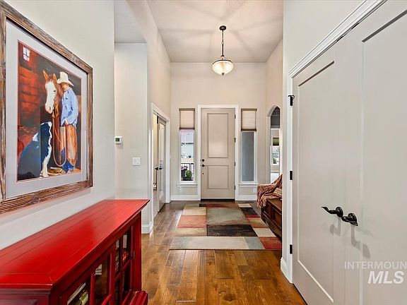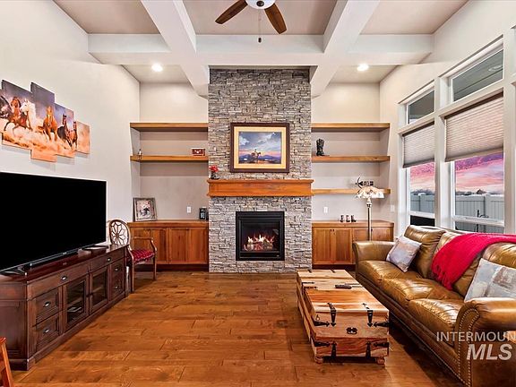 Custom Rustic Cherry Cabinets, real wood drawers with dovetailed joints, soft close cabinet doors & drawer. Engineered hardwood flooring in entry, halls, great rm, dining area & kitchen, Bosch Appliances, granite countertops, walk in Butlers pantry with appliance shelf. Master has walk in tiled no trip shower. Full stone gas fireplace, wide doors and halls, ADA toilets in Master and guest suite. Well insulated R 50 in attic of house, R-23 blown in insulation in house walls. Garage walls and attic is a R-19, The garage is finished and painted Oversized Double car garage with 48 ft deep RV bay separate gas heat for garage, 50 amp RV plug in the garage. 8x11 separate storage room or shop in the garage. Guest suite with Ada toilet, tiled shower. Shower walls reinforced for grab bars, exterior walls of the home are all 2x6. Furnace is a gas 95% efficient, many of the light bulbs are long lasting LED lights. Phone charging stations in all the bedrooms and the office. Remote controlled sunshade.