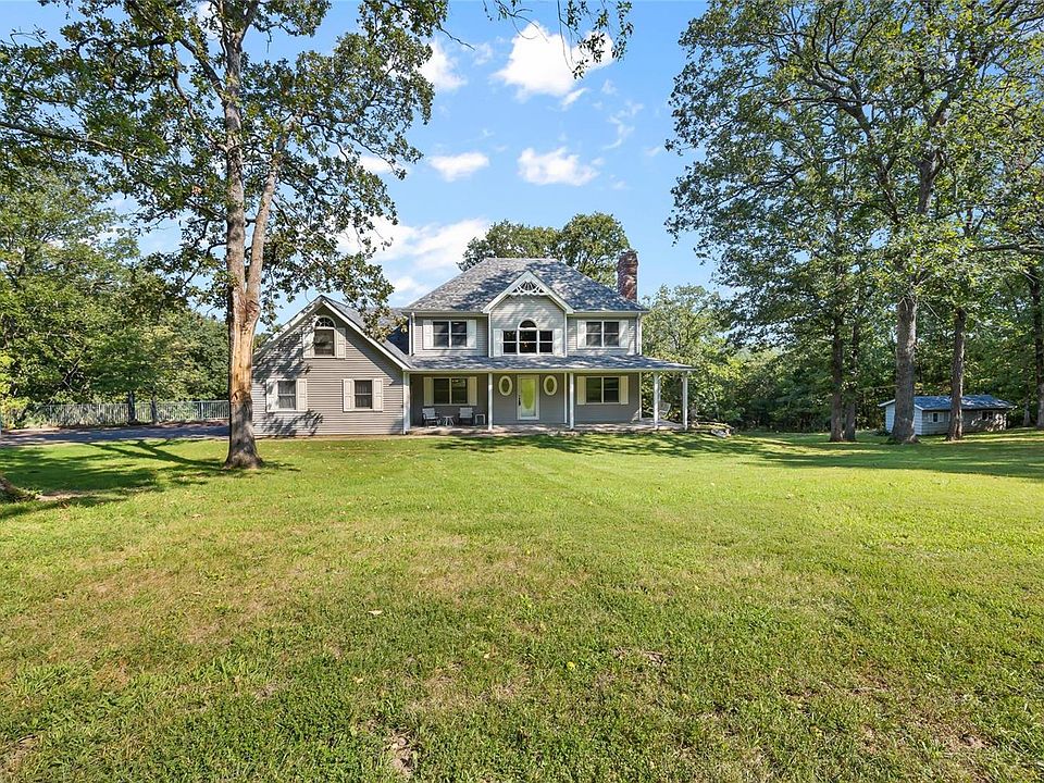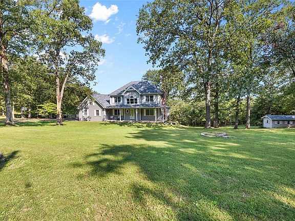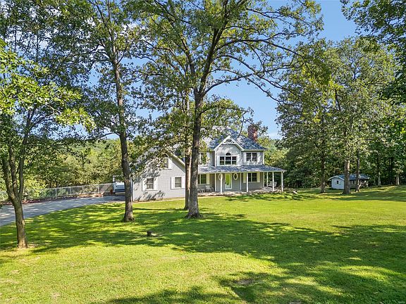 OVER 5 ACRES! NEW ROOF! NEW FLOORING!You'll love this traditional two-story home nestled in the hills of R-7 School district just minutes from shopping, major highways, hospital and MORE. Lots of updates here! PLUS 4 enormous bedrooms, 3.5 baths, finished lower level with additional kitchen. Solid wood doors, luxurious wood trim, beautiful crown moldings, some with dentil moldings. Three fireplaces! Beautiful 3 season sunroom overlooking the wooded back yard. Stunning hardwood cabinetry in the chefs kitchen. You wont believe the primary bedroom featuring 3 massive closet spaces and a private office area (or perfect for a newborn baby!!) The neighborhood features large lots and asphalt streets. BONUS detached oversized 2 care garage with room for cars, toys, etc. Additional storage shed/kids clubhouse. No disappointments here.