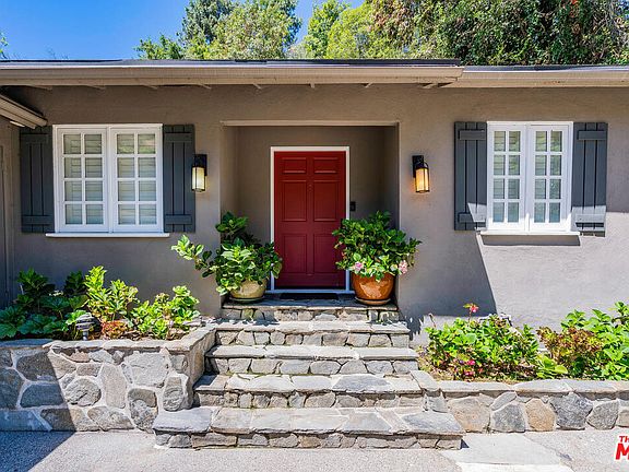 GORGEOUS BEL AIR HOME, COMPLETELY REMODELED, DESIGNER QUALITY AND STYLE THROUGHOUT! The light filled living room, and adjoining great room/dining room, have amazing vaulted ceilings, sky lights, hardwood floors, and wonderful built-in cabinets. Both rooms have wide French doors opening onto a huge outdoor deck for entertaining, complete with a custom stone gas-barbecue, refrigerator and extra storage. The gourmet kitchen has top-of-the-line appliances, an island, and custom built cabinetry. The Master Suite is a private retreat with vaulted ceilings, hardwood floors, and wonderful closets. The stunning master bath has a vaulted ceiling with sky lights, a floating tub, over-sized shower, and double vanity. Two private secondary bedrooms each have their own beautiful bathrooms. This extraordinary house has been lovingly remodeled with no expense spared, and is set back from the street on a large, beautifully landscaped lot, with extra off street parking and a two-car attached garage.