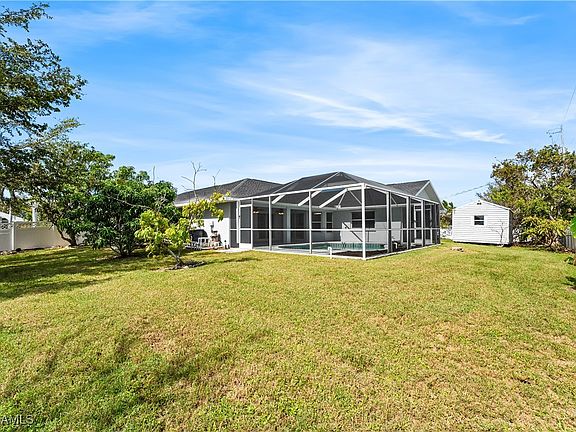EXCEPTIONAL POOL VILLA OPPORTUNITY ***** You will have a hard time to find a comparable house and such a big lot in the heart of Cape Coral at that price !! *** LOWEST PRICED COMPARABLE HOUSE AND LOT - BY FAR- *** AND IT IS HUGE: 2447 SF under air and 4 bedrooms and 3 bathrooms *** And the LOT IS LARGE as well with 0.36 acres (15,000++ SF) - it is more than 50% bigger than a regular CC lot *** Bring your big family and enjoy the ***** FRESHLY RENOVATED: ***** NEW ROOF !! 14 month ago *** NEW PAINT OUTSIDE *** FRESHLY PAINTED INSIDE *** NEW KITCHEN APPLIANCES *** E.g. with stainless steel ice/water fridge *** Washer ***** LUXURIOUS LIVING: ***** NEW GRANITE COUNTERTOPS as sellers offer $6,000 ($ six thousand) contribution for GRANITE OF YOUR CHOICE *** Pets ?? Then you will love the EXTENsIVE ($18,000) acrylic FENCE around the ENTIRE property *** TILED THROUGHOUT, easy to keep clean *** NEWER AC *** CATHEDRAL CEILINGS *** LARGE SCREENED-IN lanai and pool area with pool bath *** Pool with electric HEATER to keep the water cozy warm even in winter *** Many big windows makes it a bright and airy house *** On CITY WATER & SEWER *** The home features a formal living, dining room, and family room with a breakfast nook ***** MASTER SUITE RETREAT: ***** With a huge bath featuring a jacuzzi tub and large all glass shower *** To complete the estate it comes with a BIG Garden Shed, see photos, for all tools and stuff you don't want to clog your garage ***** PRIME LOCATION ***** Literally MINUTES to the Cape Coral High School *** Very close by: Hospital and hundreds of businesses like restaurants, shops, major, conveniences including Lowes, Target, Home Depot, ALDI and many more close by in the Veterans and Santa Barbara corridor *** The home is not only located in an area with great infrastructure but you also will be in Fort Myers within minutes and everywhere in CC pretty fast because of the proximity of Santa Barbara and Veterans *** This remarkable property combines comfort, style, and value *** Schedule a viewing today to experience the exceptional lifestyle it offers.
