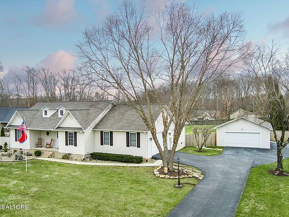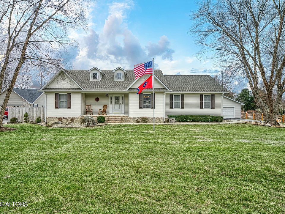 Take a look at this meticulously maintained 3-bedroom, 2-bathroom home that offers 1,704sf of comfortable living space on a level .86-acre lot in Sunset Ridge- no HOA. Inside, the spacious living room welcomes you with a vaulted ceiling, hand scraped hardwood floors, a stone fireplace with NEW gas logs, creating a warm and inviting atmosphere. The kitchen is a chef's delight, including quartz countertops, a tile backsplash, and stainless steel appliances, including a 5-burner gas range, OTR microwave, and dishwasher. With ample cabinets, meal preparation is a breeze. The master bedroom features: a trey ceiling, a walk-in closet, and a full bath complete with a double sink vanity and a tile walk-in shower. Plus, there's no need to worry about carpet - this house boasts a carpet-free interior. But the beauty doesn't stop inside. Step outside to enjoy the professionally landscaped yard with low voltage lighting, a rock patio, covered front porch & rear deck, and a serene koi pond, creating a perfect setting for relaxation. The backyard is surrounded by a wooden privacy fence, providing a private oasis for you and your loved ones. Need extra space? The 24x32 detached garage is perfect for storage, a workshop, or parking your cars. Practicalities are covered too - a brand NEW roof was installed just 9 months ago, and natural gas logs were added in 2023. The location is unbeatable, with easy access to shopping, restaurants, and I-40, making your daily commute a breeze. High speed internet is also available. Don't miss out on this fantastic opportunity to call Sunset Ridge home. Schedule your showing today and start a lifestyle of comfort and convenience! *Buyers to verify all information and measurements before making an informed offer*