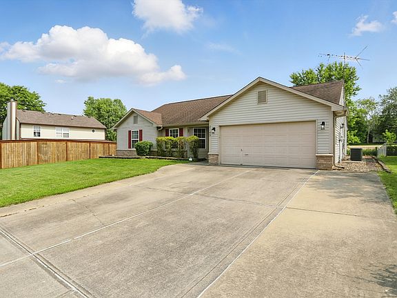 Welcome to this inviting 3-bedroom, 2-bathroom ranch-style home located in the Harvest Meadows neighborhood. This home offers a practical layout with two separate living spaces, providing flexibility for everyday living or entertaining. The kitchen features granite countertops, stainless steel appliances, and a breakfast bar that opens to the dining area. Step outside to enjoy a large concrete patio and a semi-private, partially fenced backyard-perfect for relaxing or hosting gatherings. The primary suite includes a private bathroom and a walk-in closet. Additional features include an insulated, climate-controlled garage with 220-volt service, an 8x12 storage shed with loft, and an oversized driveway with space for up to six vehicles. Major updates include a new roof and gutters in 2018, a water heater installed in 2021, and a new HVAC system in 2022. Conveniently located near US-31 and I-65, this home is close to shopping, dining, and schools. With its functional design and thoughtful updates, this home is move-in ready and waiting for your personal touch.
