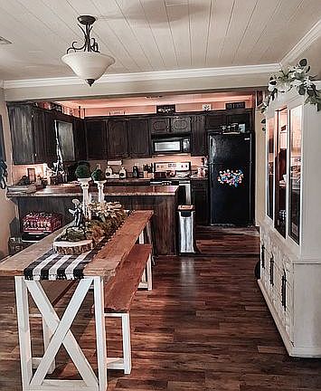 Beautiful Farm/Ranch home with long porch 2200 sq ft 3 bedroom 2 bathroom Living room Dining Room/kitchen Laundry room Two large size bedrooms with great closet room One small bedroom with small closet Does have a separated shop building we are currently repainting 20x24 We are doing some small renovations around the house like remodeling master bathroom and closet currently we are remodeling the pantry as well. Located more out in the country with neighbors spaced out but still on pavement road. Does have city style trash pick up and security system in place! Currently Pending Sold