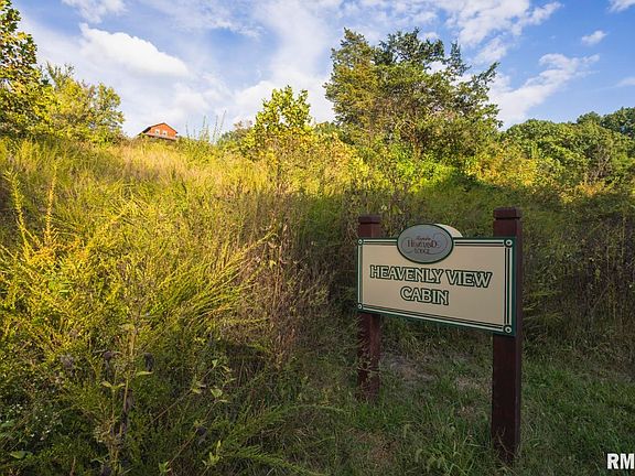 Welcome to Heavenly View Cabin, a serene ridge top retreat in rural Illinois, featuring breathtaking views across the Mississippi river valley. This stunning lodge blends rustic charm with refined living, offering over 3,200 sq ft of finished space designed for large gatherings. The property includes vast covered porches, a 7'x20' screen porch, and a layout that takes in all the natural surroundings. The main level features 13-foot vaulted ceilings, hardwood floors, a large kitchen, two living rooms, a formal dining room, a bedroom, and a full bath. The entire upstairs is a dedicated primary suite with a massive his-and-hers walk-in closet and a full bath. The finished walkout basement currently serves as a game room and includes two non-conforming bedrooms and another full bath. The cabin is heated and cooled by an efficient Geothermal system. Outside, the property has some impressive topography topped with mature hardwoods perfect for hunting and nature enthusiasts. To the east, a one-acre food plot with some connecting early successional habitat provides excellent cover for deer, turkey, and quail. The historical barn in the valley is awaiting restoration. This turn key hill top escape is fully established, and ready for a new owner to continue its legacy.