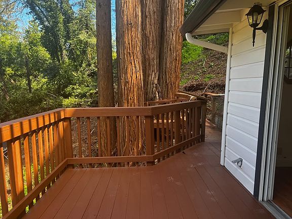 1 bedroom, 1 bath, plus Kitchen/living area and wood deck on the lowest part of a three story duplex. Private wood deck with expansive views and redwood trees. Laundry room is shared and has it's own separate entrance. 1 parking space in front of the duplex.
