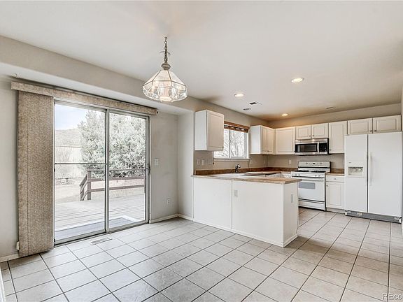 Welcome home to this spacious 2088 square foot house in the Park View Greens neighborhood in Centennial (SE Aurora). This well-maintained 3 bedroom, 2.5 bathroom home also features a 560 sq ft finished basement. Check out the Matterport Tour. Located in the award winning Cherry Creek School District. Convenient to Buckley Air Force Base, Denver International Airport, E-470, Denver Tech Center, and Southlands Mall. Remodeled in July 2017 with new carpet and paint. New roof installed Fall 2019 and fresh exterior painting also done in late fall 2019. Furnace replaced in July 2018. Updated kitchen and bathrooms with newer sinks, light fixtures and faucets. Newer counter tops in kitchen, with ceramic tile floors, white cabinets and white appliances (25 cu ft side-by-side refrigerator, gas stove, dishwasher and microwave). Unique see-through fireplace between the family room and living room. Finished basement features new carpet throughout the large open entertainment area and separate office with glass French doors. The laundry area is also in the basement. Washer and dryer is included. Nice back yard, professionally landscaped, fenced, with sprinklers and a large inviting deck. Backs to open space. Central Heating and Air Conditioning. Over-sized 2-car garage with newer automatic opener. Come take a look.