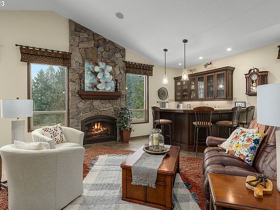 Welcome to your dream home on Bald Peak! This gorgeous property boasts breathtaking views of the valley and mountains, visible from every angle thanks to the large windows that surround the 2194 square foot living space. The stunning interior features 3 bedrooms and 2 bathrooms, a gourmet kitchen with granite countertops, double ovens, and pantry, and an indoor bar area perfect for entertaining. The floor-to-ceiling rock fireplace adds a touch of rustic charm to the living area.Step outside onto the wrap-around porch and enjoy the tranquil Koi pond and panoramic views. With a large heated shop and extra large pole barn, you'll have plenty of space to store all your toys and hobbies. This property is just 15 minutes from Newberg and 20 minutes from Hillsboro, making it the perfect balance of privacy and convenience.Don't miss your chance to make this stunning Bald Peak home your own! Schedule a showing today and experience the beauty and serenity of this incredible property firsthand.