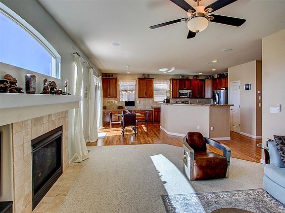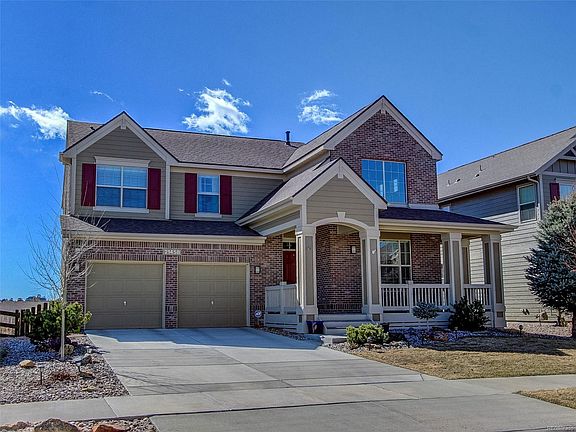 Gorgeous View of Pikes Peak and Devil's Head! Finished walk-out basement backing to a beautiful greenbelt and trails. Professionally landscaped backyard with a custom patio.Terrific wraparound front porch with dining room access. Extensive hardwood floors leading to the bright kitchen that features granite counter-tops and island breakfast counter, 42" cabinets, pantry and stainless steel appliances. The spacious family room has a cozy gas fireplace. Upstairs features a loft that is perfect for a media center and has a separate desk nook. Large master suite has a walk-in closet and a luxurious 5-piece bath with an oval tub and separate shower. Finished basement has a large rec room and den. Walking distance to Middle and High School, Close to the Fitness Center, pool, club house and popular neighborhood Coffee House.