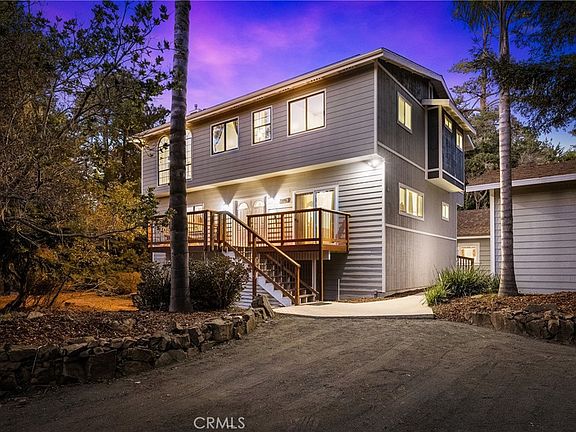 Explore this rare opportunity to own a spacious home and property in Cambria. This stunning home features dual primary bedrooms with en-suite bathrooms and large walk-in closets, thoughtfully placed on separate levels for added privacy. With six total bedrooms and 4.5 baths spread over 3,400 sq ft, the residence offers abundant space for comfortable living. Situated on a sprawling 28,000 sq ft lot, this property provides exceptional amenities including an oversized garage and RV parking, a detached auxiliary space that could be used as an office, studio, or gym. Several great patios to enjoy the peaceful atmosphere and indoor/outdoor lifestyle the Central Coast provides. Woods views and privacy in every direction. Fully owned Solar Power! There is also an opportunity for one of the bedrooms and bath to become a fully contained apartment with separate entrance. This property is located in the West Lodge Hill neighborhood, west of HWY 1, only 2 blocks from the entrance to the many trails of the Fiscalini Ranch Preserve, and a short distance to the Pacific Ocean and beach access. This is truly a rare and remarkable property in an ideal location!