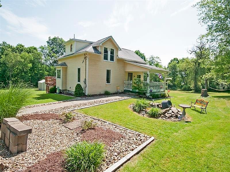Privacy abounds in this great two story situated on 3 usable acres just outside of Zelienople. With the look and feel of country living, yet very close to interstates, golf courses, great restaurants & entertainment, this is a place to call home. Step into the Family Room and see the lovely fireplace and the natural light shining through all the windows. Laminate flooring is found in most of the first floor with ceramic in the updated kitchen that sports beautiful wood cabinets & newer appliances. Step through to find the Family Dining area with a cozy bay window seat. Notice that the original woodwork has been preserved through most of the 100+ year old home. 3 nicely sized bedrooms are upstairs plus an updated bath featuring a Jacuzzi style tub, glass block shower & side by side sinks. Step outside to the darling wrap around porch overlooking the fantastic grounds, above ground pool, shed plus a two car detached garage - every mechanic's dream with its very own pit!