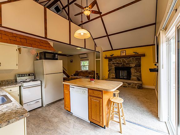 - Kitchen Island, Fireplace, Cathedral Ceiling(s), Eat-in Kitchen, Loft, Fam Room Fireplace