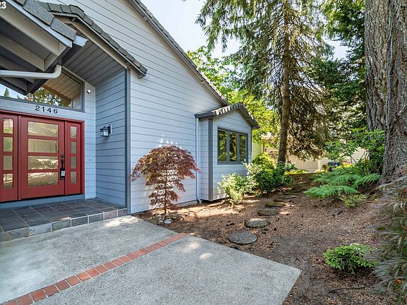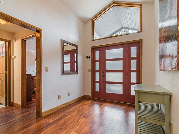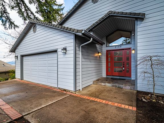 View Home in a desirable Southeast Eugene location! Good sized entrance hall with built in bench leads to a living room with soaring vaulted ceilings and plenty of windows that allow lots of natural light into the home. The dining room has French doors leading to the deck. The updated kitchen with all appliances included, boasts Galaxy Quartz countertops and a prep island with veggie sink. Eating area with great views of city, mountains and trees. Office / den is separated from the kitchen by a folding pocket door and has a separate entrance as well. The primary bedroom is spacious, has two double closets, and an ensuite bath with a walk-in shower and soaking tub. Good separation of space between the primary and second bedroom. Acacia wood flooring throughout. This home is currently set up for dual living but can easily be converted to single family use. The lower level has its own separate entrance, leading to a large family room, kitchenette with cooktop and refrigerator, a bedroom with a Murphy bed, and a full bath. The large deck that begs you to appreciate the views and trees in this private setting leads to a patio at the rear of the home that has a built-in wood burning fireplace and hot tub, perfect for entertaining or relaxing. Gazebo and area for gardening finish off this great outdoor space. New roof, siding, exterior paint, wood flooring and interior doors in 2020. Interior was painted in 2019. Call your agent for a private showing today!