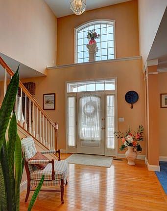 Lovely Charter Homes-built Moreland model for current/original owner*9' ceilings 1st floor*2-story foyer*tray ceilings sunroom-DR-MBR*hardwood floors foyer-hall-sunroom*cherry kitchen w/island-breakfast bar-pantry cabinet-desk-granite countertops*rounded drywall corners*family room gas fireplace*owner's suite with double door entrance-ensuite bath with soaking tub-recent tile and glass shower*large first floor laundry/mud room with utility tub-outside entrance-2 closets*professionally finished lower level family room with .5 bath*bilco door outside entrace to unfinished storage area w/double door access*paver patio w/retaining wall-sidewalk to rear of entire house connecting to stamped concrete patio outside sunroom*large level rear yard great for sports*walk to Fritz Elementary School