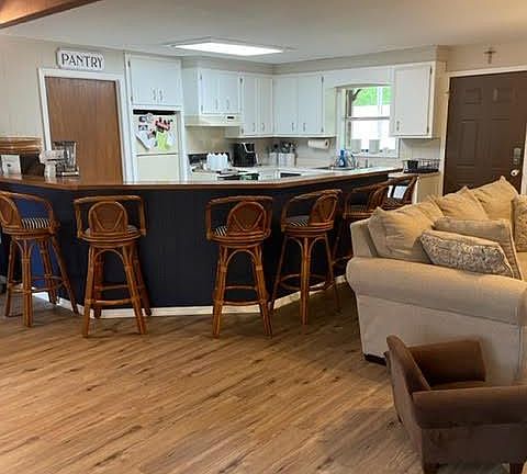 WOW! A precious home on the lake in the quiet secluded gated community at Lake Claiborne has breath taking views of the lake with a pier, deck, boat house & gazebo with large back porch overlooking the lake, grilling deck & upper deck. The backyard & lake views are beautiful. This perfect home features a large open floor plan with eat at bar overlooking the great room with fireplace & large windows with perfect views of the lake. The kitchen opens to the great room with large walk-in pantry & laundry room. Home features a separate sitting room that could be a bedroom with glass doors opening to the large back patio with fabulous lake views. The home features 2 bedrooms & could be 3 with both bedrooms having their own full bath & half bath for guest. The primary suite has windows overlooking the lake has his & her closets & large separate walk-in closet. The primary bath has vanity area with his & her sinks, separate tub/shower & toilet area. Home totally painted, new ceiling fan & lights, new flooring in home, new carpet in 2 bedrooms, new dishwasher & much more. The property & lake views with this home are stunning. The home has wired permanent shed/workshop Party barge remains.