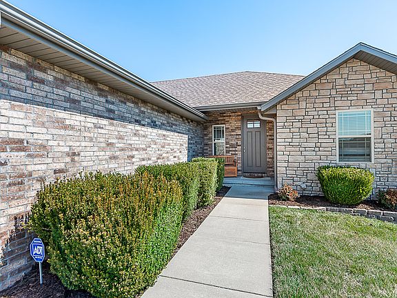 Looking for a custom-featured home in East Springfield at a great price? 2146 North Pavilion located in quiet Pearson Park is that home! With a light and bright open floorplan with windows taking advantage of the rising sun every morning, this home was built for the sunshine lover! Built in 2018, the home has 1723 sq.ft. of living space including split bedrooms, a beautiful open living room, a light color scheme throughout, white cabinetry with granite countertops, and so much more! The open living room is very bright with gas fireplace and a very tall ceiling with a unique ''coffered'' treatment. The floorcoverings are scratch-resistant luxury vinyl that extends through the living areas. The kichen features a large island, stainless appliances, custom cabinetry, a refrigerator that will stay with the house and a full pantry area for even more storage! The main bedroom/bath suite is a great size with tray ceiling in the bedroom and an upgraded bathroom with double vanities, soaking tub, tiled walk-in shower, and large walk-in closet including wood shelves and a built-in cabinet too. Both guest bedrooms are oversized with nice closet spaces and the guest bath has a tub/shower combo. Outside, the covered back patio overlooks a fully privacy fenced yard with a view of the countryside to the east along with gorgeous sunrises if you so choose. The yard has sprinklers front and back and the driveway is extra wide leading to the oversized 3 car garage. Access along Division to Hwy 65 is an easy 10 minute drive. It is a Strafford address but Springfield schools including Hickory Hills elementary right down the road! A quality home with a great location and floorplan!