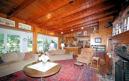 Classic Ranch style Board & Batten hidden in oak, sycamore & pine trees. Large family home with full guest house, equipment sheds, chicken coop and 3000 sq.ft traditional barn and four stalls with three paddocks.
