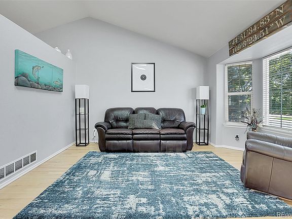 Enjoy the wonderful light in this home whether you are sitting in the living room with vaulted ceilings and two skylights or out back in the enclosed sunroom enjoying the morning sun or afternoon shade. The kitchen has been updated with slab granite counter tops and stainless appliances. The home has wood flooring throughout and has recently been painted. The primary bathroom has tile flooring and a jacuzzi tub for your relaxing enjoyment. The fenced backyard also has a brick patio and plenty of room for kids or dogs. You will have plenty of parking with the three-car garage and driveway. Aurora Public Schools are all close by and you have great access to either I-225 or E-470. Roof was replaced 11/23, water heater in 2022 and paint inside and out in 2021.