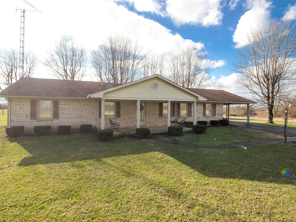 Conveniently located just two minutes outside of town, this well-maintained brick ranch home situated on over 20 acres may just be what you are looking for! Previously used as pasture for both cattle and horses, your options are limitless. The property features a small pond, tobacco barn that boasts room to be converted back into an eight stall horse barn and a four car detached garage with plumbing that is readily accessible to loft area that could easily be converted into an apartment. PRICED BELOW APPRAISAL!